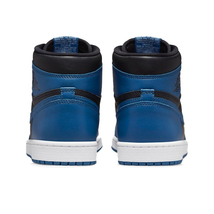 The Air Jordan 1 High Dark Marina Blue arrives with a smooth black leather upper with Dark Marina Blue overlays and Swooshes. On the ankle wrap, a black Jordan Wings logo pays homage to the origins of the Air Jordan 1. From there, a contrasting white and blue Air sole completes the design.