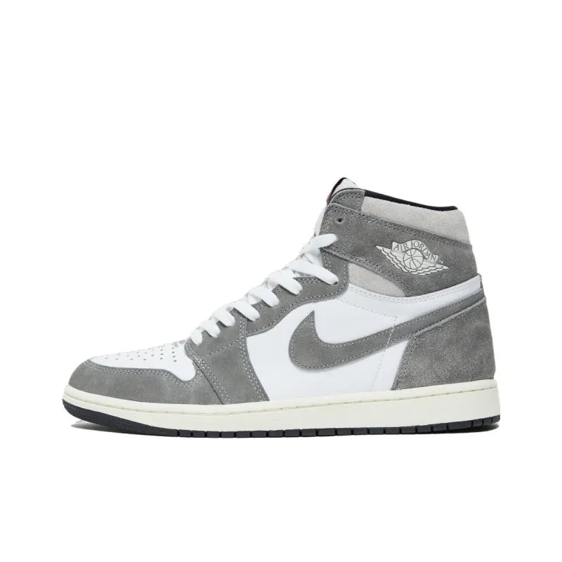 The Jordan 1 Retro High OG Washed Black is constructed using white leather and Washed Black uppers. Hints of grey are placed around the collar, while the sail colored midsole helps give the sneaker an aged design. The limited edition Air Jordan 1’s are tied together with white laces and feature a white Air Jordan Wings logo above the Swoosh.