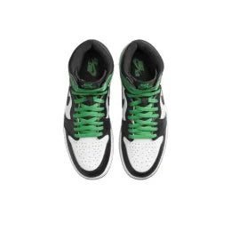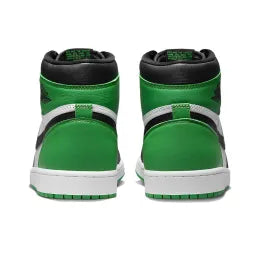 The Air Jordan 1 Retro High OG is constructed using a leather upper, brought to life with shades of white, black and Lucky Green throughout. Lucky Green Nike branding sits on top of the black tongue and insoles of the sneaker. The sneakers are tied together with Lucky Green laces.