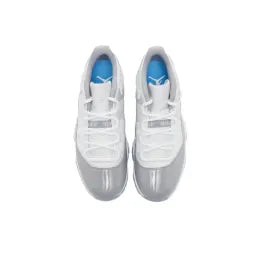 The Jordan 11 Retro Low Cement Grey draws inspiration from the Air Jordan 11 Retro Cool Grey and the Air Jordan 3 Retro White Cement. Jordan Brand used a white mesh upper with a grey patent leather mudguard. The limited edition sneakers are laced with white rope laces and sit on top of icy blue outsoles.