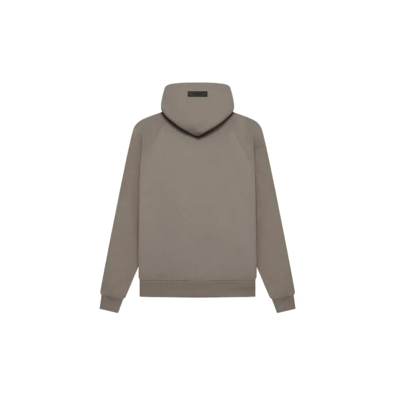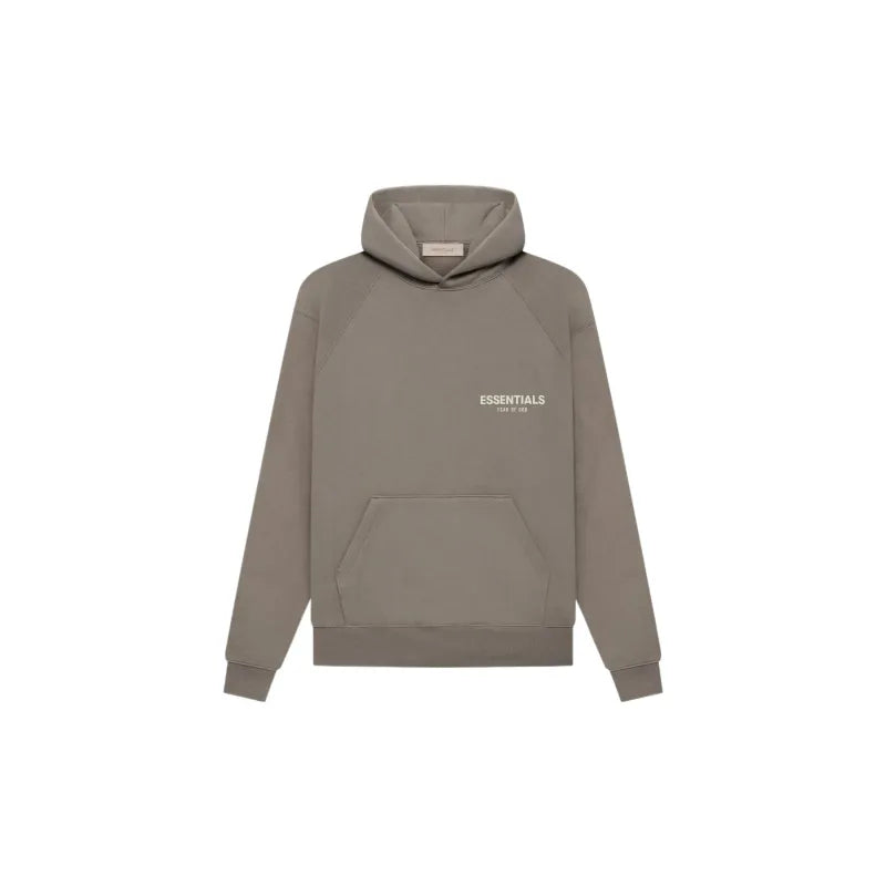 This hoodie features a black rubberized logo patch on its back and a velvety Fear of God Essentials logo on its chest. As far as materials go, this hoodie was made from a heavyweight 80% cotton, 20% polyester fleece material.