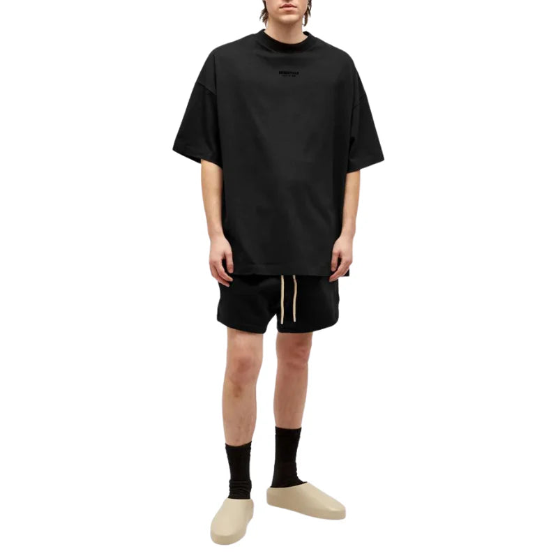 The Fear of God Essentials sweatshort has been redesigned with a shorter, cropped, relaxed leg fit. The Fear of God Essentials logo is vintage-inspired but updated in a rubberized soft-touch applique. Additional details include an encased elastic waistband with a new heavweight drawstring with rubberized tip and side seam pockets. A new Fear of God rubberized label is at the center front.