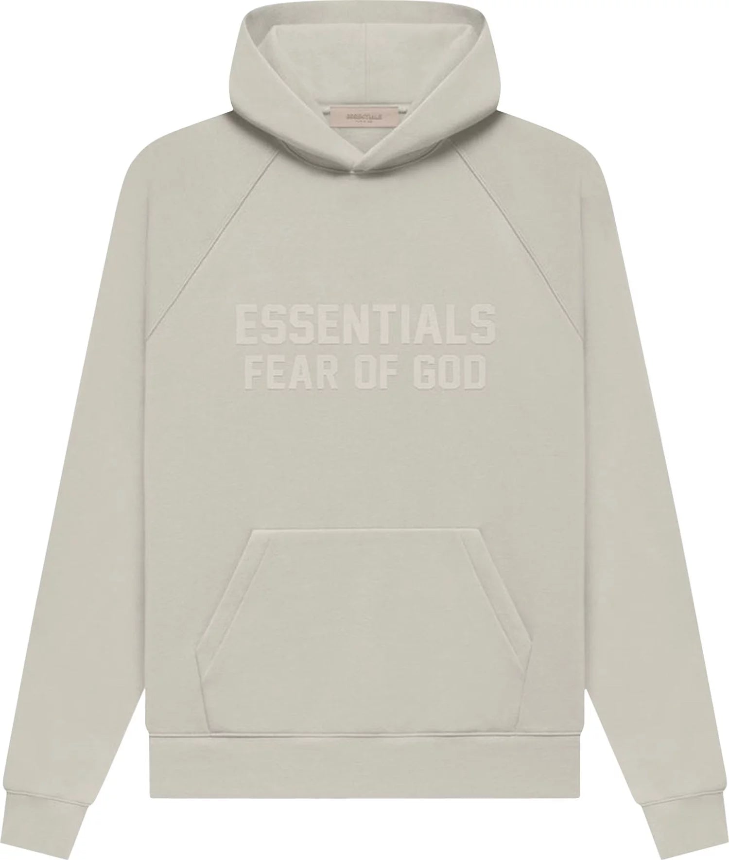 The Fear of God Essentials Hoodie 'Smoke' is a signature piece from the Pre-Fall 2022 collection, This style is cut from a heavyweight cotton blend and features fleece-backing. It's designed for a regular fit and detailed with a tonal logo across the chest and a front kangaroo pocket.