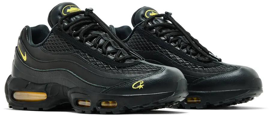 The Cortiez x Nike Air Max 95 “Honey Black” blends Corteiz street DNA with the classic Air Max 95 silhouette, creating one of the boldest collabs of the year. Featuring layered panels in deep black tones contrasted with rich honey-yellow accents, this pair delivers a gritty yet premium look. The co-branded detailing, gradient midsole, and signature Air units give the shoe a striking profile, while the rugged materials keep it built for everyday wear. A must-have for fans of London street culture and iconic Nike heritage.