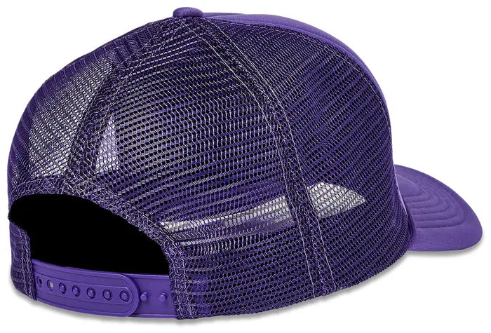 The Gallery Dept. French Logo Trucker Hat 'Flo Purple' combines style and functionality. Designed with a breathable mesh back, it enhances ventilation, making it suitable for extended wear. The vibrant purple color emphasizes visual appeal, while the classic trucker silhouette provides a timeless fit, ideal for diverse casual occasions.