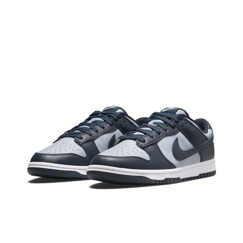 The Nike Dunk Low Georgetown arrives with a smooth grey leather upper with Midnight Navy overlays and Swooshes. From there, matching woven Nike Air tongue tags, heel tabs, and Air soles complete the retro design.