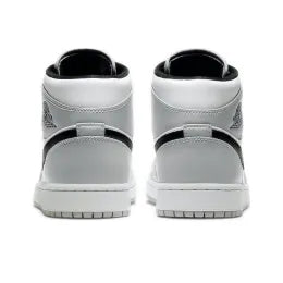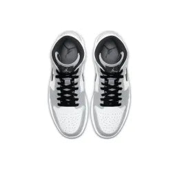 The shoe features a perforated toebox, a smooth upper made of leather with successive white inserts at the lower area, and an ankle with grey inserts on the rest of the shoe. Black laces that match with the Swoosh complete the look, while the regular branding features and grey sole with two-tone white complement the design. The shoe also has the trademark Air Jordan wings emblem.