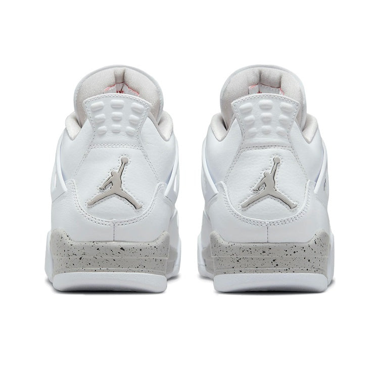 The Air Jordan 4 Retro ‘White Oreo’ features a design theme that recalls the original ‘Oreo’ AJ4 from 1999. The black tumbled leather upper of the older shoe is replaced by a clean white finish, though the speckled molded eyelets in Tech Grey remain the same. The neutral hue is repeated on the Jumpman heel logo and polyurethane midsole, featuring encapsulated Air cushioning in the forefoot and a visible unit under the heel. A second Jumpman adorns the tongue in a contrasting pop of Fire Red.