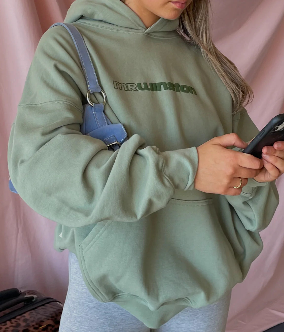 Mr winston hoodie arriving in a beautiful khaki colourway with the iconic puff print
