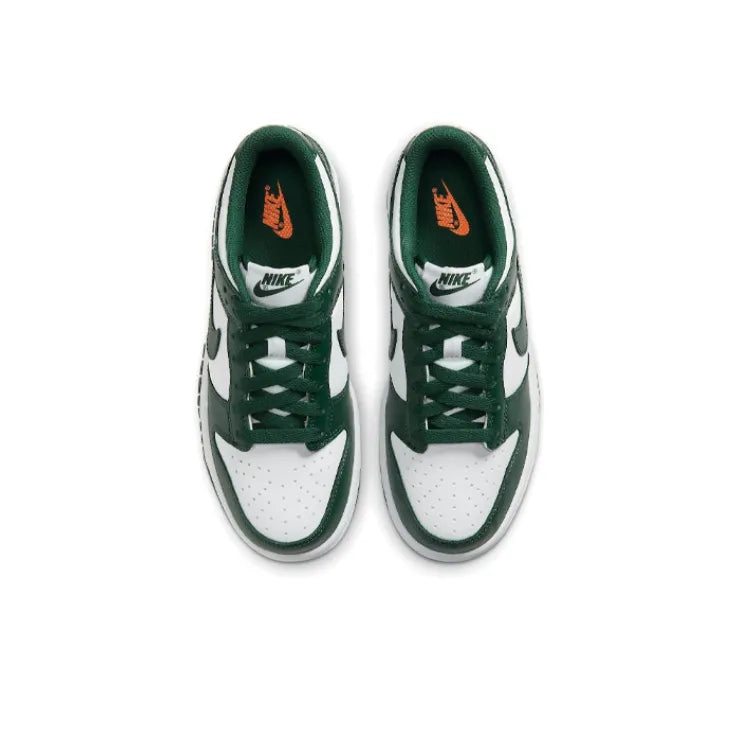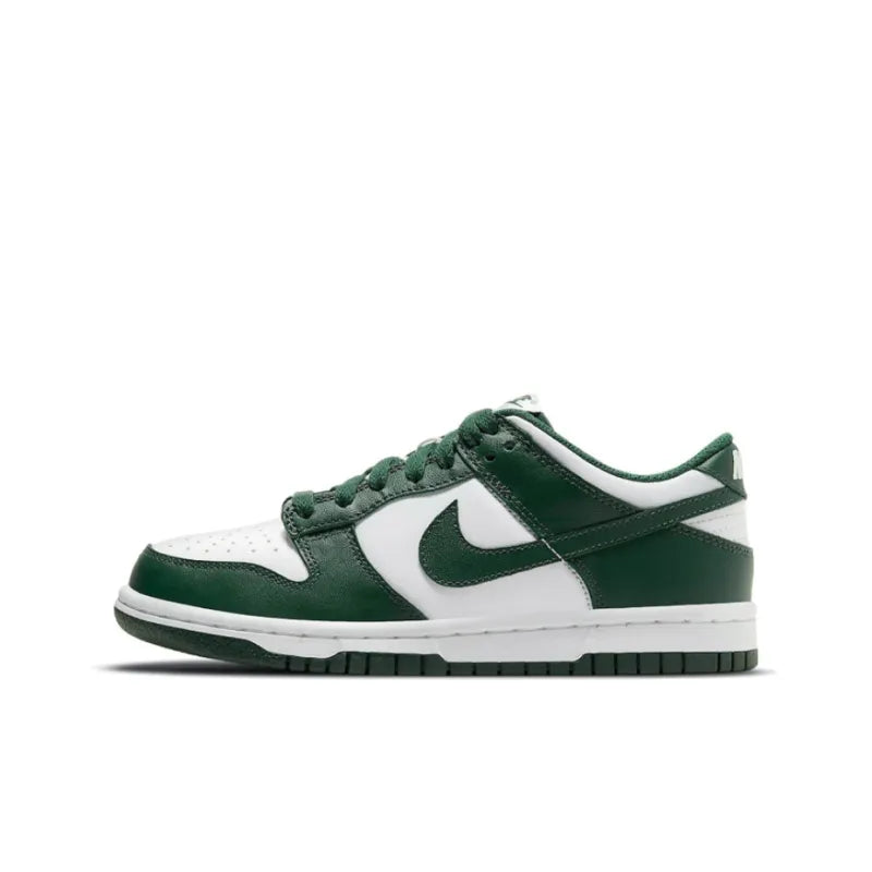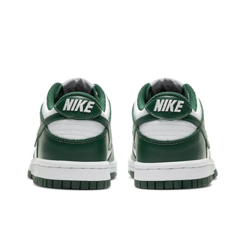 The Nike Dunk Low Michigan State GS has as two dominant hues, the varsity green and white.