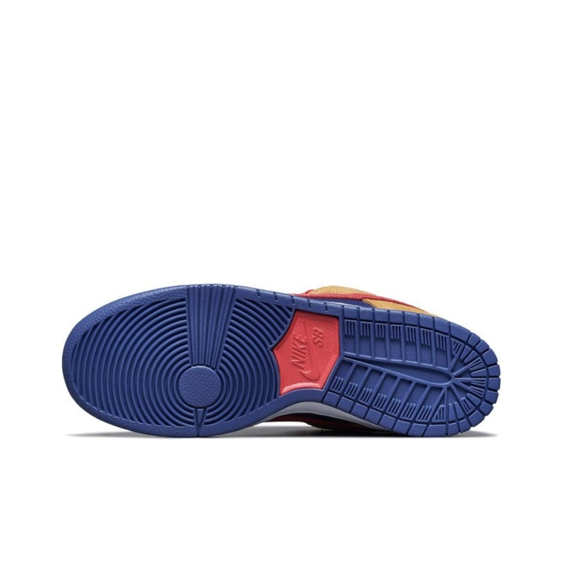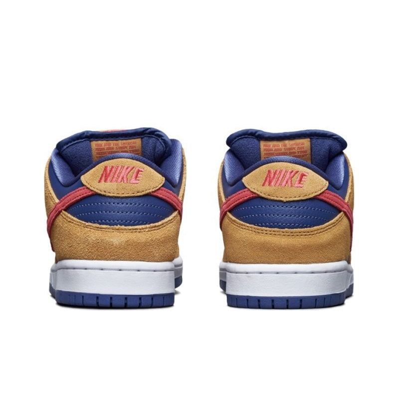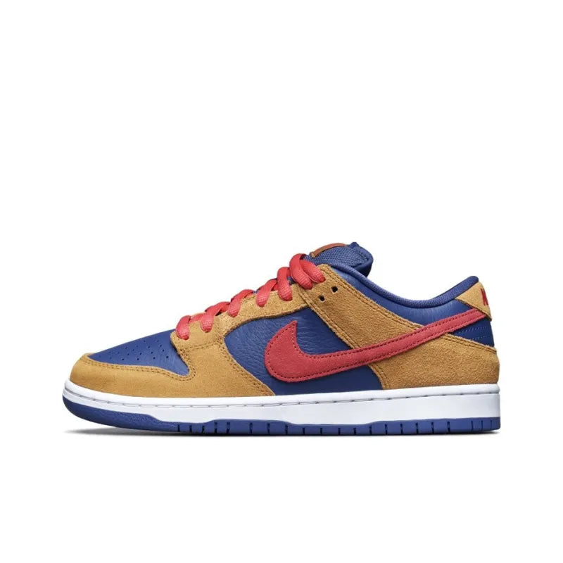 The Nike SB Dunk Low Reverse Papa Bear has a unique color scheme that combines earth tones with a purplish-blue shade.