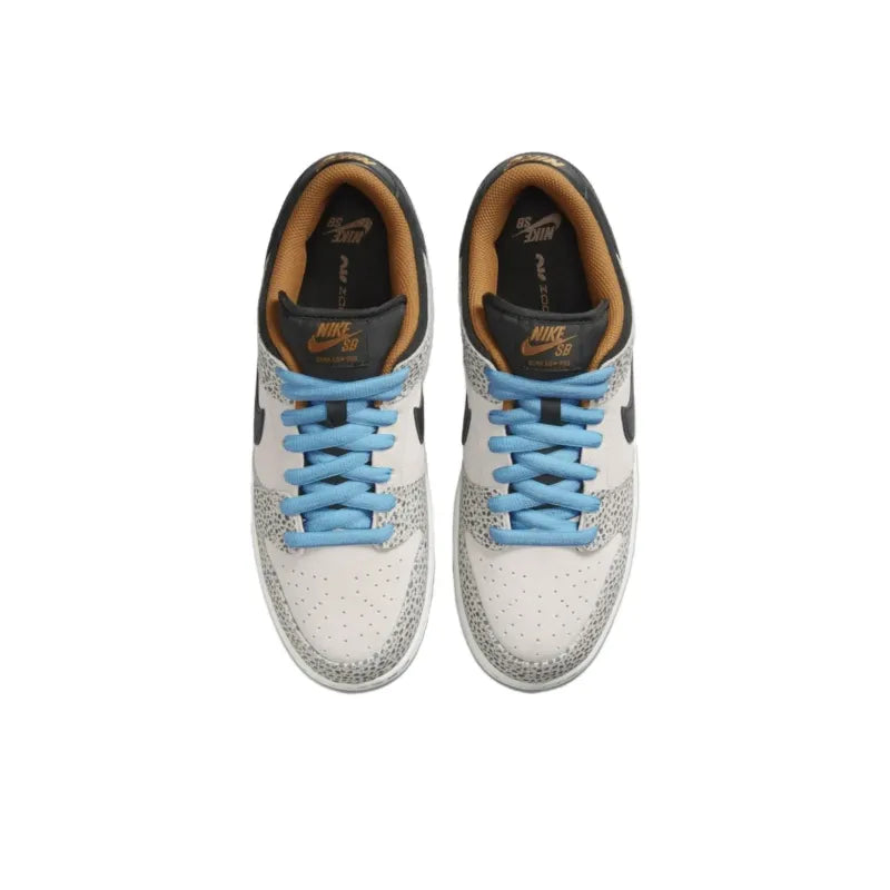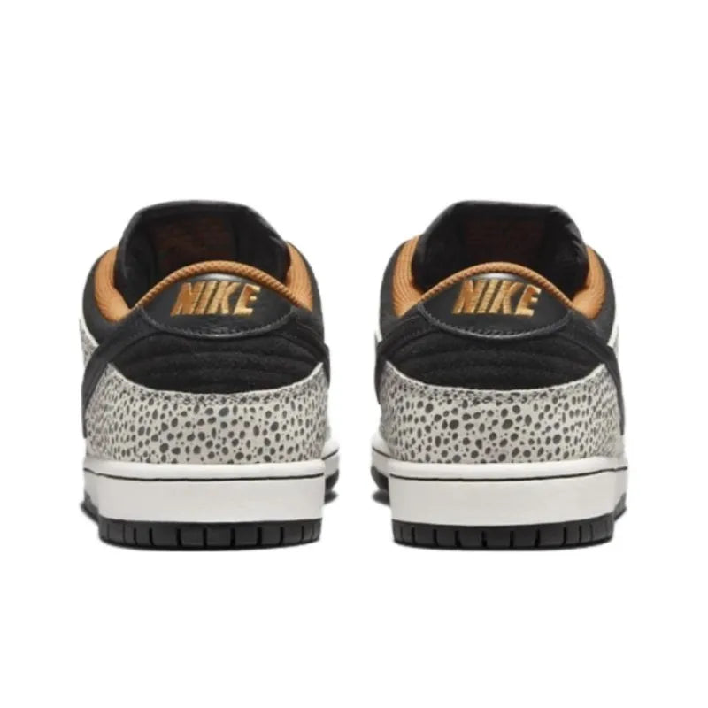 At the Electric Pack Olympic Safari Nike SB Dunk Low, The suede upper in Phantom serves as a low-key background for the tonal heel and forefoot overlays covered in Safari print’s iconic black speckles. The rubber cupsole, Swoosh logo, tongue, back tab, and collar come in black, while Monarch orange decorates the collar lining and appears on the heel tab’s ‘NIKE’ embroidery. Zoom Air cushioning in the insoles and padding around the tongue and collar further elevates this eye-catching sneaker.