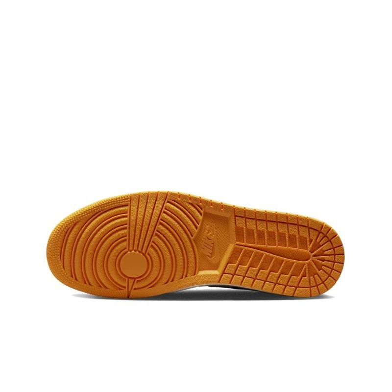 This Retro OG Air Jordan 1 comes in an all leather build that combines a white base with a yellow toe box, and some yellow overlays in the heel and ankle area. A contrasting black appears in the toe and lace area, Swoosh, and Wings logo on the lateral side. A classic AJ1 white midsole and a yellow rubber outsole round off the design.