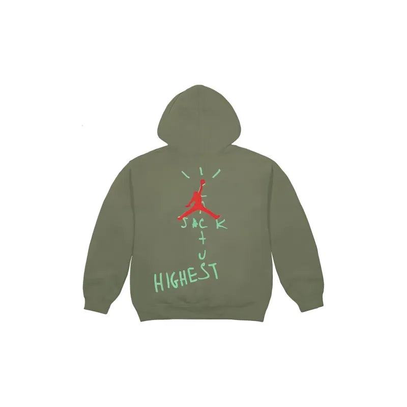 this Travis Scott x Jordan Cactus Jack hoodie in Olive has been one of the best selling streetwear items on StockX. The hoodies features upside down Nike branding on the front and overlapping Cactus Jack and Air Jordan logos on the back of the hoodie.