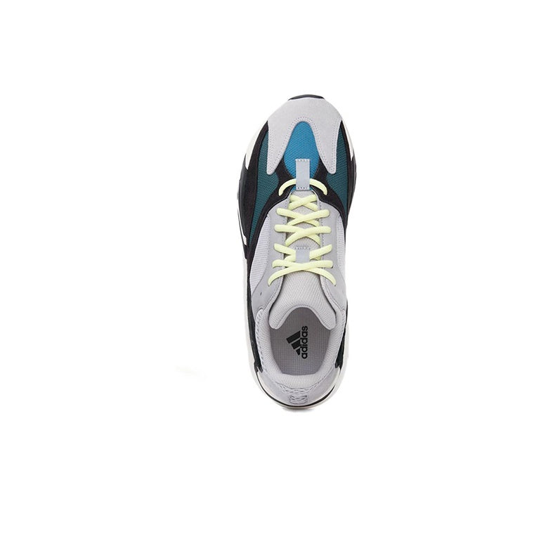 The Yeezy 700 Boost Wave Runner is the shoe that led Yeezy's pivot from a sleek, minimal aesthetic to a chunky, 90s inspired one. This was the gateway sneaker between knit runners like the 350 and the grungy skate look of the 550. The Yeezy 700 Wave Runner features a grey mesh and leather upper with black suede overlays and teal mesh underlays. At the base, a thick Boost sole and contrasting hits of orange complete the design.
