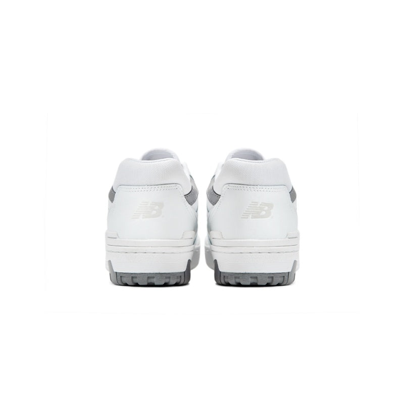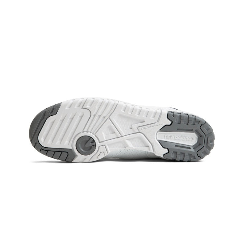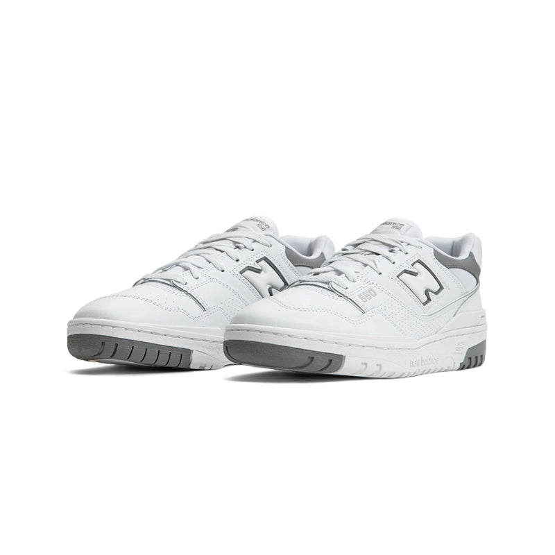 Crafted with a combination of materials, these White Shadow Gray New Balance 550 sneakers feature a predominantly white leather upper with white mesh accents at the heel and tongue. Subtle touches of gray are introduced through the suede mudguard and heel counter, extending to the classic 550 sole unit. The usual New Balance branding elements, including the "N" logos, can be observed in matching tones on the heel, midsole, tongue, and midfoot. Completing the overall look, you'll find New Balance branding in white on the heel, midfoot, and midsole, along with the "550" embellishment on the forefoot.