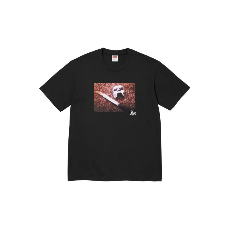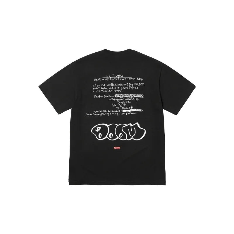 This Supreme MF DOOM tee is available in black and features a round neck collar with a short-sleeve design made from pure cotton. The highlight of this top is the graphic of rapper MF DOOM’s trademark mask alongside a machete sword printed at the front, and a letter from the album Operation: Doomsday printed at the back. Underneath the letter is the rapper’s name in a street graffiti font and a tiny Supreme red box logo. A branded woven neck tag completes the design.