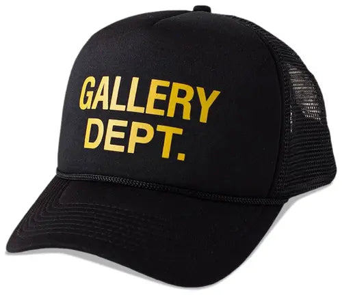 The Gallery Dept. Trucker Cap in Black offers a blend of vintage-inspired design and modern comfort. Constructed with a breathable mesh back and a structured front panel, this cap ensures optimal ventilation and a secure fit. Its adjustable snapback closure allows for personalized sizing, making it a versatile accessory for daily wear. Crafted with attention to detail, this cap complements any streetwear ensemble with understated sophistication.